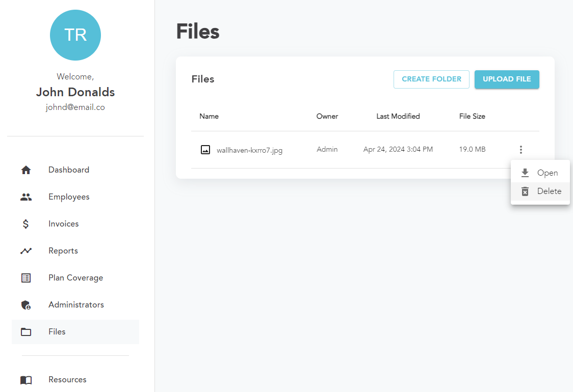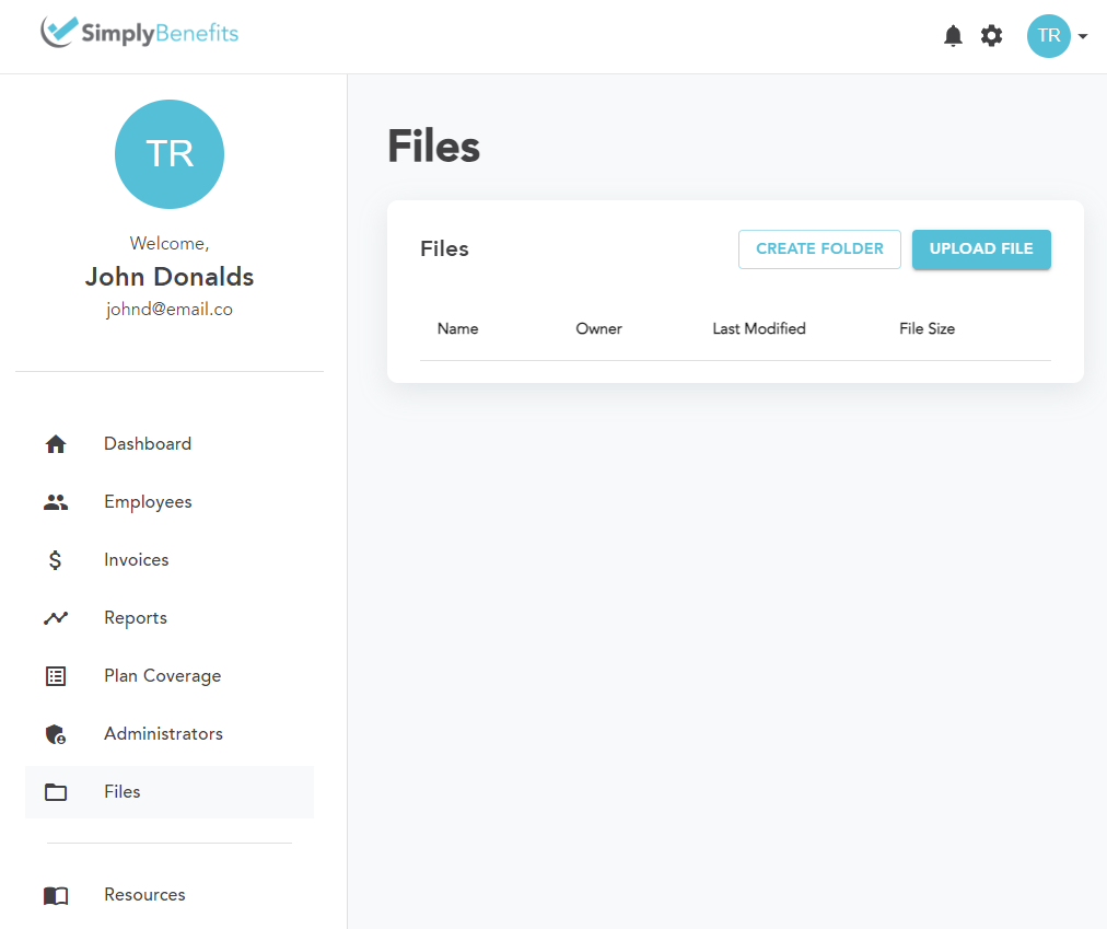 The File Manager is where files can be temporarily shared between you and Simply Benefits in the most secure manner. This ensures only you and our Group Administration team have access to your sensitive documents related to coverage and services.